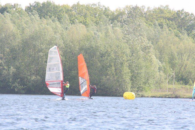 Voller Erwartungen und mit viel neuem Material gingen wir am ersten Maiwochenende am Lippesee an den Start. Das Wetter war grausig kalt und regnerisch, aber der Wind war gut. Einige Erwachsene hatten mit ihren großen Segeln Schwierigkeiten bei den starken Böen, bei den letzten Wettfahrten wurde es dann einfacher.